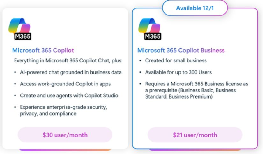 Microsoft vừa chính thức ra mắt Microsoft 365 Copilot Business — một gói dịch vụ mới dành cho các doanh nghiệp nhỏ và vừa (SMB) — với mục tiêu giúp họ tiếp cận nhanh hơn sức mạnh của AI và nâng cao năng suất làm việc. Copilot Business sẽ bắt đầu khả dụng từ ngày 1 tháng 12 năm 2025 thông qua trang Microsoft.com và các đối tác CSP. Với mức giá 21 USD/người dùng/tháng và giới hạn đến tối đa 300 người dùng, gói này cung cấp đầy đủ các tính năng AI hỗ trợ như phiên bản Copilot hiện tại, nhưng với mức chi phí dễ tiếp cận hơn, phù hợp cho các doanh nghiệp quy mô nhỏ hoặc vừa vẫn sử dụng Microsoft 365 Business Basic, Standard hoặc Premium.