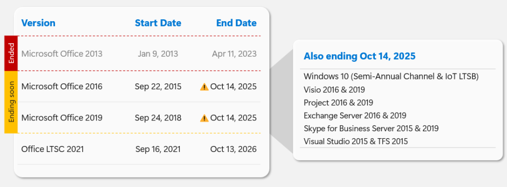 - Windows 10 (Semi-Annual Channel & IoT LTSB) – 14/10/2025